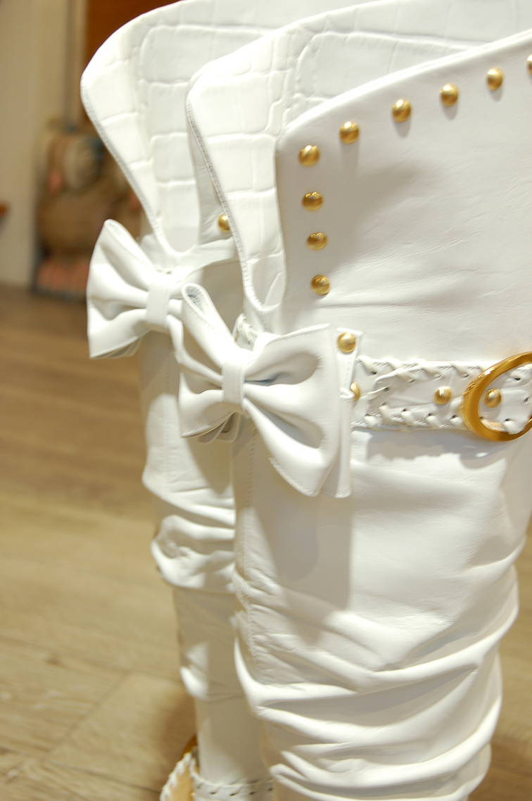 個性的なデザインですが、白を基調としたとても綺麗なニーハイブーツに仕上がりました。