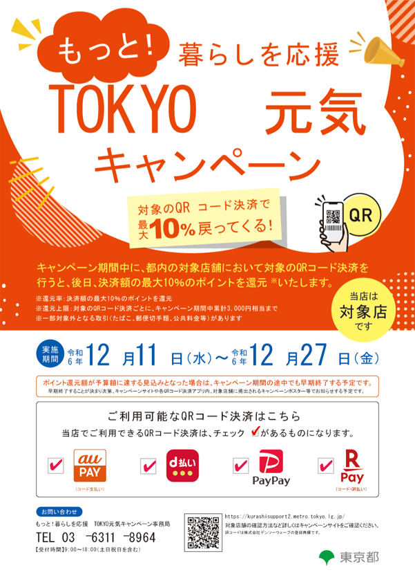 もっと!暮らしを応援! TOKYO元気キャンペーンのお知らせ!