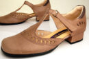 飾り穴が目を惹くTストラップサンダルです。踵にスポンジが入っていますので足当たりが柔らかくなっております。ベルトはマジックテープ仕様で着脱が簡単です。普段使いにオススメです。