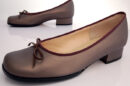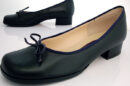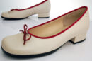 グログランテープでパイピングを施したバレエシューズ風のパンプスです。ヒールが3㎝ありますので、バレエシューズ履きたいけどペタンコのフラットシューズは歩きにくいと感じる方にオススメです。