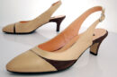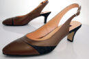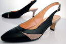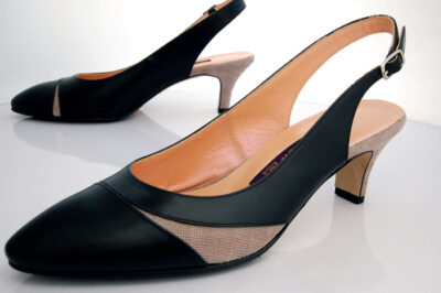 甲の切り替えが印象的なバックバンドパンプスです。つま先はポインテッドトゥ、ヒールは5cmとなっております。