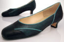 パイピングを施した切り替えが特徴のスクエアトゥパンプスです。ヒールは3cmになります。