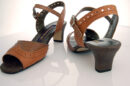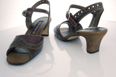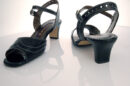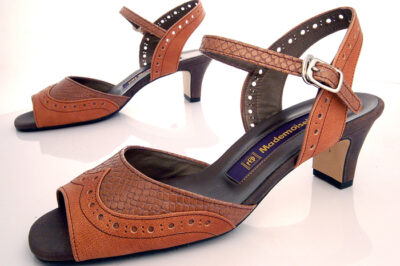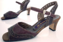 アンクルベルトのクラシカルな雰囲気のカレントオリジナルサンダルです。メダリオンを多用したデザインは、とても涼しげで暑い季節にピッタリの一足です。ヒールの高さは、5cmで平ヒールを使っているのでとても安定感があります。