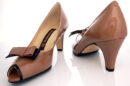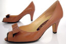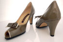 取り外しの出来るリボンが特徴的な7cmヒールのオープントゥパンプスです。リボンを取るとシンプルなパンプスになり、リボンを付けるとより女性らしい雰囲気になります。