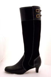 ゴールドのバックルを使ったに2本ベルトがポイントのロングブーツになります。