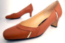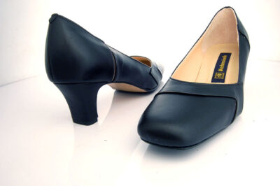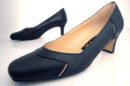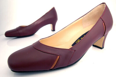 サイドに覗くメタリックカラーがアクセントのスクエアトゥパンプスです。安定感のある5cmヒールになります。