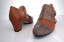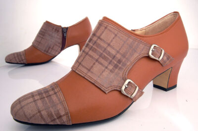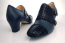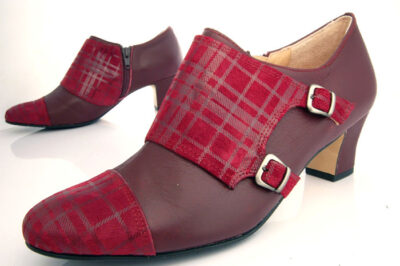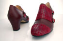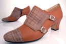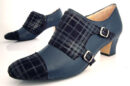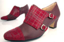 チェック柄が目を引くダブルモンク風ブーティーです。ダブルモンクのキチンと感をチェックで可愛らしく纏めました。ヒールは太めの5㎝ヒールです。