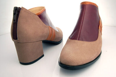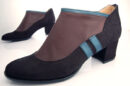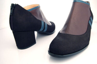 サイドの2本のラインがスポーティーな印象を与えるラウンドトゥブーティーになります。5㎝の太ヒールで歩きやすい作りになっております。