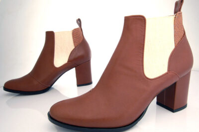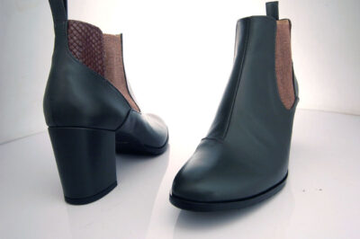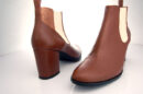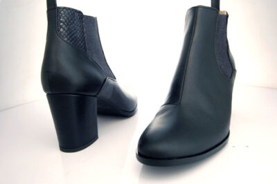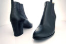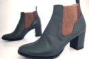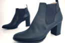 履き口に少し使用した型押し革がポイントのラウンドトゥサイドゴアブーツです。ヒールは7cmの太ヒールです ので安定した使用感のある作りになっております。