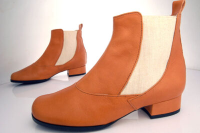 幅広のゴムを使用したサイドゴアブーツです。ヒールは3cmのフラットヒールになっております。