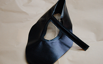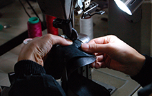 裁断された革にノリを付け、芯を貼り合わせ、ミシンを使い縫い合わせていきます。