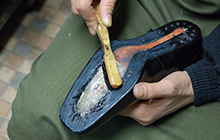 完成した時点では皮が硬い状態です。足にフィットさせるために適度に履き慣らしなじませましょう。