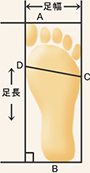 この時、ワイズを測った位置(C、D)を足型に記録しましょう。